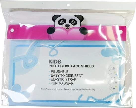Детският предпазен щит за лице панда е създаден да мотивира най-малките да го носят редовно. Прозрачният, лек материал не изкривява образа и позволява на децата свободно да дишат и да общуват, докато пяната на челото повишава комфорта и при по-продължително носене.