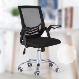 Стилен и функционален въртящ се стол за офис и домашен кабинет, комбиниращ въздушна мрежеста облегалка с меко подплатена седалка. Хромираният петлъчев кръст с колелца осигурява стабилност и лесно движение до бюрото, а плавното регулиране на височината с газов амортисьор приспособява седенето към вашата фигура.