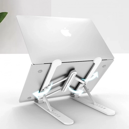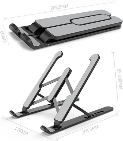 Леката стойка се сгъва и пренася лесно. Регулируемият ъгъл на наклон и разстоянието между крачетата се адаптират към различни устройства.