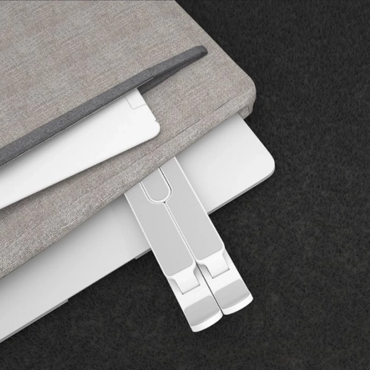 Стойката предлага плавно регулиране на наклона за оптимален ъгъл при писане и гледане на съдържание. Разстоянието между крачетата лесно се адаптира към размера на устройството, така че стойката стабилно държи различни видове лаптопи или таблети.