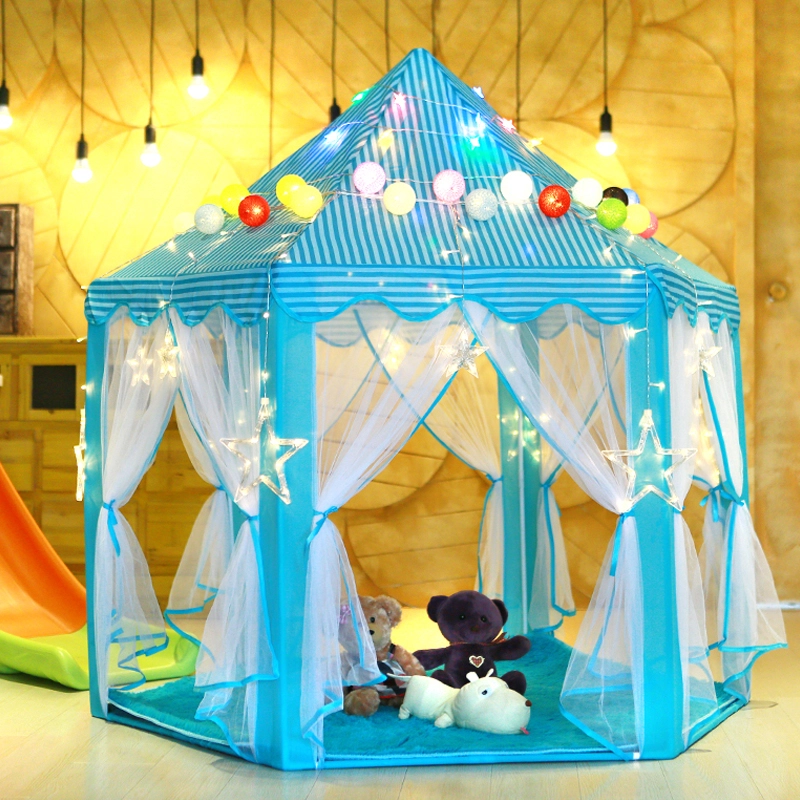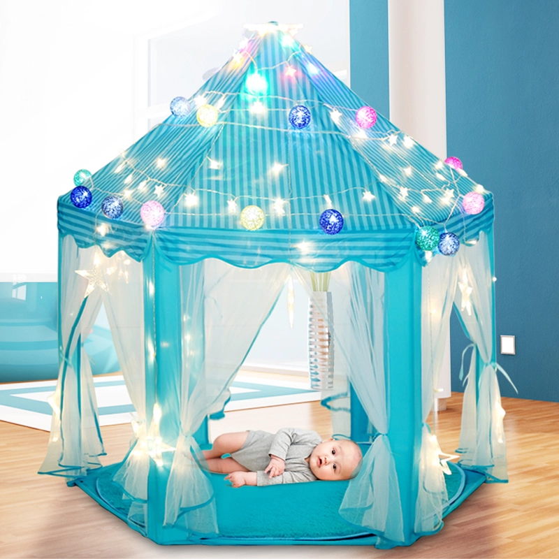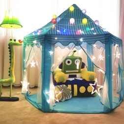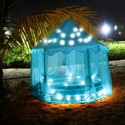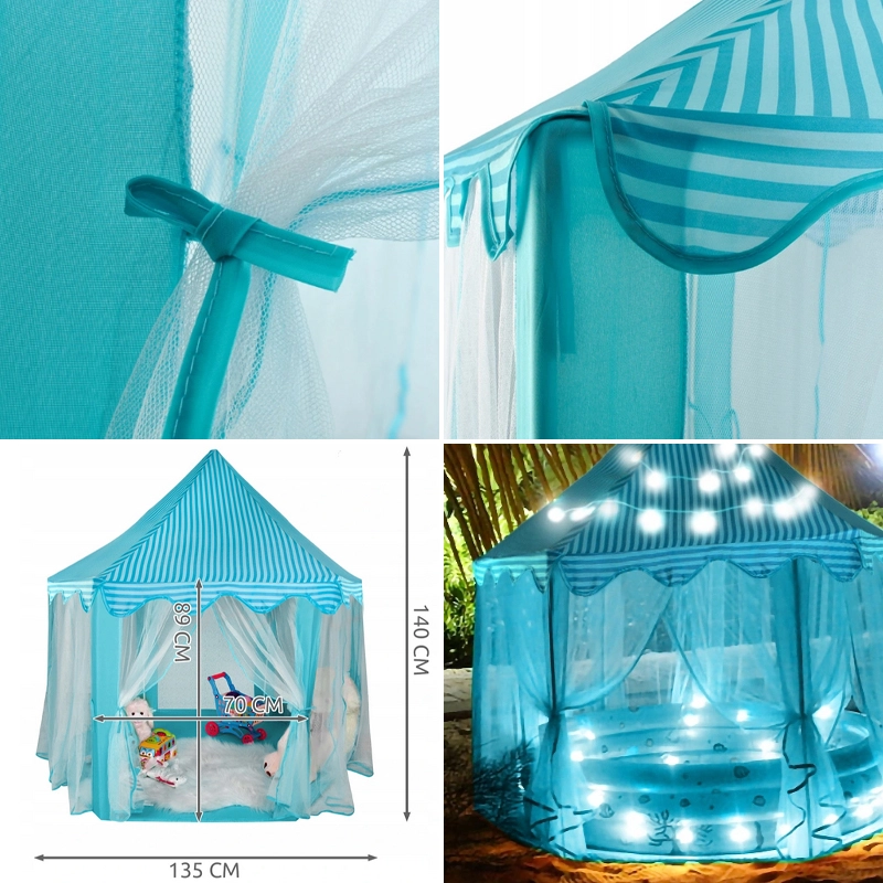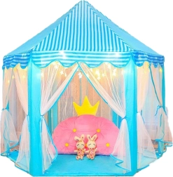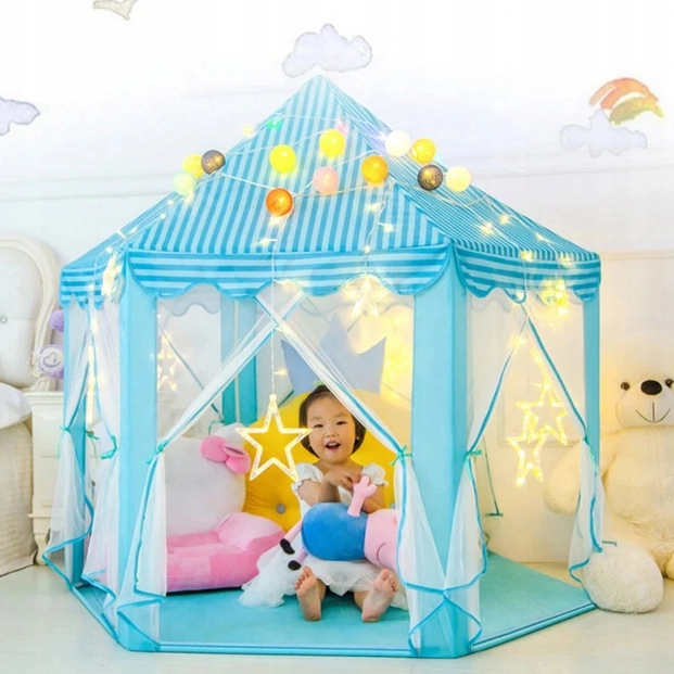 Тази шестоъгълна детска палатка е перфектен избор за всички малки принцеси и принцове, които мечтаят за магическо място за своите игри. Благодарение на своя ефирен дизайн с възможност за преместване на пердетата палатката предлага достатъчно място за няколко деца. Бързо се сгъва и пренася благодарение на включената чантичка за съхранение с дръжка.