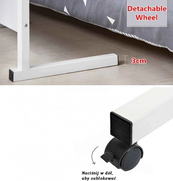Практична и стилна мобилна масичка с дървен плот върху здрава метална рамка предлага регулируема височина 70–90 см, четири колелца с спирачка за лесно преместване и универсално приложение като помощна масичка до леглото, холна маса или работна масичка за лаптоп. Издръжливата повърхност се почиства лесно, а компактните размери я правят идеалното решение за дневна, спалня и кухня.