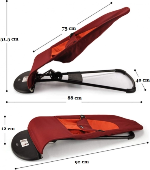 Стабилната метална рамка и предпазният колан осигуряват надеждна защита, докато компактните размери улесняват съхранението и преместването между стаите. Люлеенето естествено подпомага моторното развитие и равновесието, така че детето не само се успокоява, но и се развива.