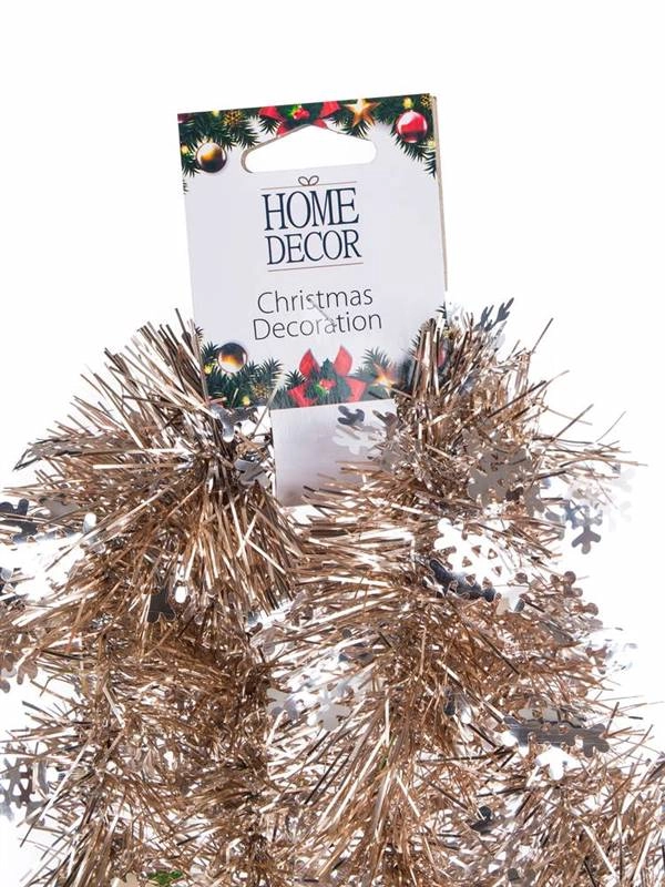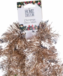 Тази декоративна коледна гирлянда от марката HOME DECOR се отличава с качествена изработка и непреходна визия. Двуметровата дължина позволява гъвкаво декориране, а комбинацията от сребърни отблясъци и шампански тон прекрасно подхожда както на класически, така и на модерни украси.