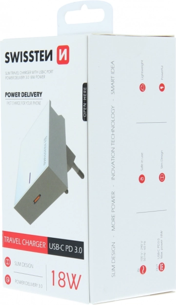 Започнете да зареждате вашите устройства бързо и ефективно със зарядното Swissten, което осигурява 18W изходна мощност благодарение на технологията Power Delivery 3.0. Идеално е за мобилни устройства като iPhone и други съвместими устройства.