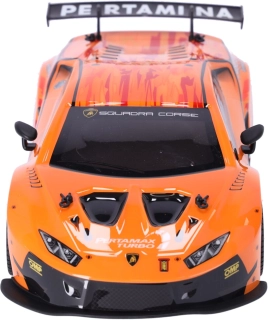 Този детайлно изработен RC модел впечатлява с реалистичен вид, официален лиценз и отлични динамични качества. Здравата конструкция и прецизната изработка на каросерията вярно пресъздават състезателния специал HURACÁN GT3.