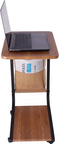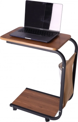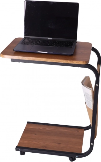 Тази многофункционална масичка лесно се подпъхва частично под легло или диван, за да имате лаптопа, кафето или дистанционното винаги под ръка. Четирите подвижни колелца осигуряват плавно преместване между стаите, а стабилната метална конструкция с плотове в декор тъмно дърво придава модерен вид на интериора.