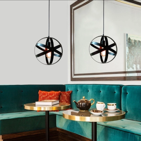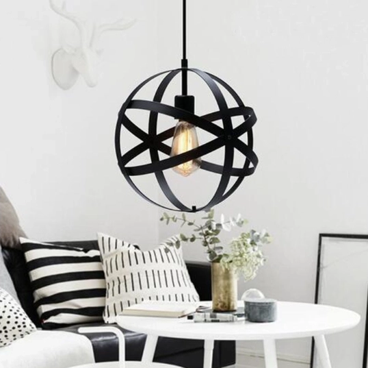 Сферичната конструкция с преплетени метални ленти придава на лампата геометрична и оригинална визия.