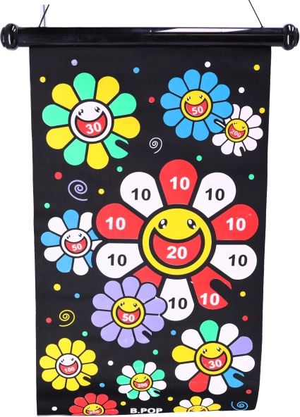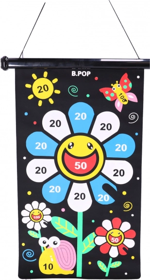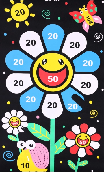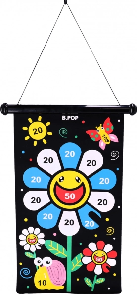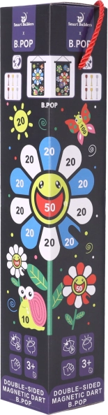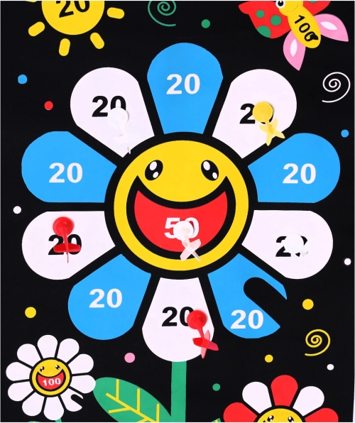 Безопасната, двустранна магнитна игра със стрели носи много забавление за деца и възрастни. Играта се състои в точно хвърляне на стрели към отбелязаните точки на дъската. Комплектът включва 6 магнитни стрели в три цвята: бял, жълт и червен. Черната текстилна дъска е украсена с цветен цвят, който подпомага развитието на сръчността и концентрацията. Функцията за навиване на дъската улеснява нейното съхранение и пренасяне.