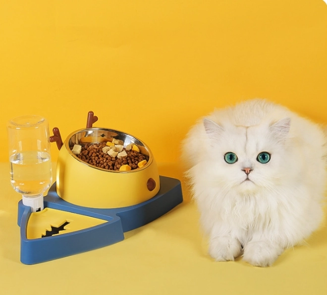 Тази дизайнерска станция за хранене съчетава всичко необходимо в едно: купа с лабиринт за забавяне на храненето и прозрачна бутилка, която автоматично допълва водата. Забавеното хранене помага за предотвратяване на храносмилателни проблеми и подуване, докато прясната вода е винаги под ръка дори по време на вашето отсъствие.