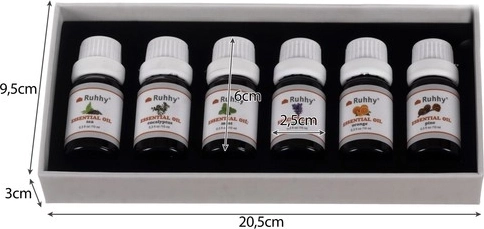 Комплектът от етерични масла Ruhhy ви носи шест прекрасни аромата, които ще внесат ново ниво на спокойствие и уют в живота ви. Тези масла са перфектни за използване в съдове за разпръскване, съдове с вода или дори автопарфюми. Всички шишенца са с вместимост 10 ml и са сигурно затворени.