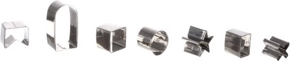Комплектът е изработен от неръждаема стомана, което гарантира дълъг живот и лесна поддръжка на формите, които са сребристи и естетично приятни.