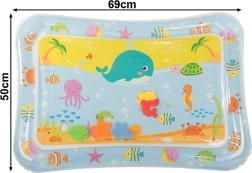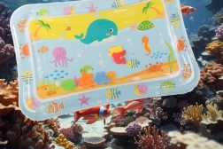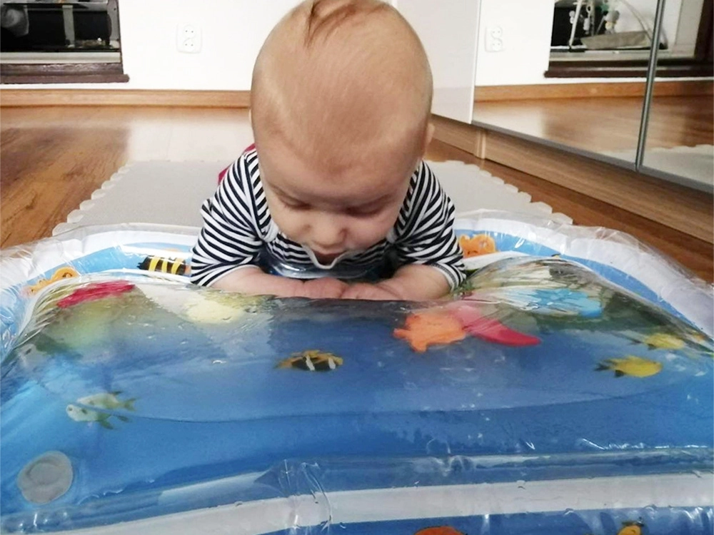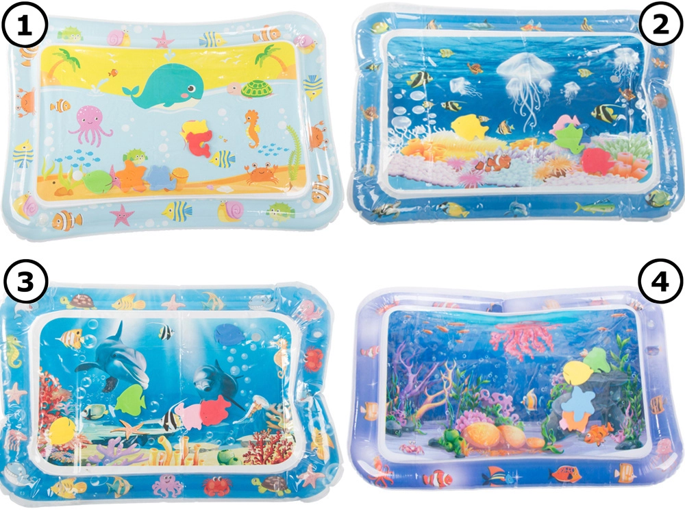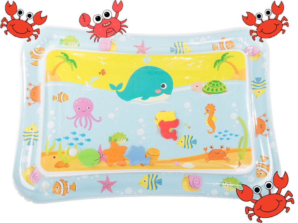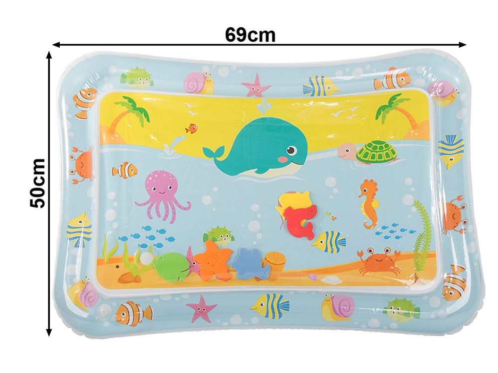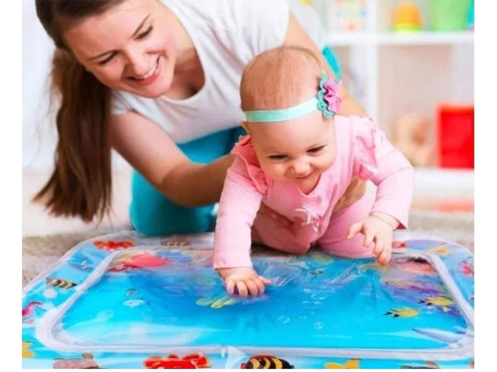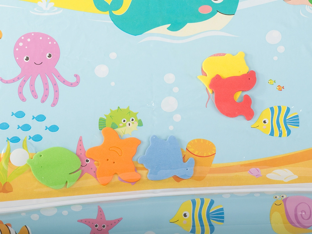 Надуваемата сензорна водна подложка е проектирана така, че да стимулира развитието на сетивата на вашето дете чрез различни текстури, цветове и форми. Децата могат да играят с движещите се форми вътре в подложката, което помага за развиване на координацията око-ръка.