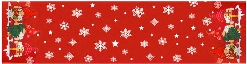 Елегантен червен тишлайфер с бели снежинки и звездички, допълнен от чаровни джуджета с подаръци в краищата, незабавно създава празнична и уютна атмосфера. Стои чудесно върху бяла покривка или самостоятелно и лесно се комбинира с класически съдове.