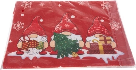 Наситено червено, снежинки и три весели джуджета с подаръци превръщат всяка маса в уютно празнично кътче.