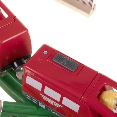 Пълният сет с релси, мостове, влак, кран, фигурки и аксесоари позволява на децата да създават собствени светове и винаги нови трасета.
