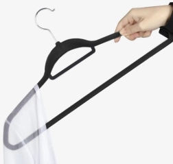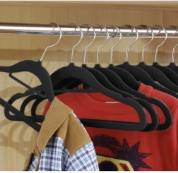 - Висококачествен материал: Закачалките са изработени от пластмаса и покрити с фин велур, което предотвратява плъзгането на дрехите.
