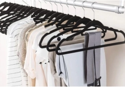 Велурените закачалки Ruhhy са перфектното допълнение към всеки гардероб. Те не само осигуряват достатъчно място за дрехите, но и гарантират, че вашите облекла остават перфектно организирани и без намачкване.