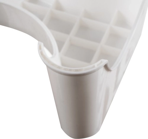 Леката и здрава PP пластмаса е издръжлива, не абсорбира миризми и се почиства лесно само с избърсване. Поставката има добре обмислени противоплъзгащи елементи на крачетата и оформени зони за стъпалата, така че остава стабилна. Благодарение на универсалните размери пасва на повечето тоалетни и след употреба лесно се прибира до чинията.