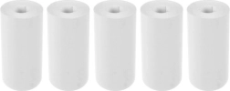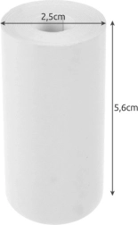 В опаковката ще откриете 5 ролки бяла хартия с ширина 5,6 cm и диаметър 2,5 cm, които тежат 92 g, а с опаковката — 102 g. Благодарение на компактните размери са подходящи за лесно боравене и съхранение.