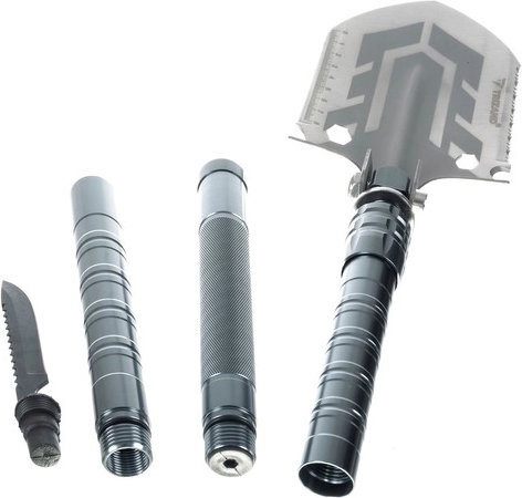Лопатата Trizand съчетава 16 изключително полезни функции, което я прави идеален инструмент за къмпинг, пътуване или в автомобила.