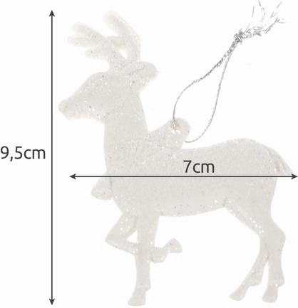 Елегантни коледни украшения във форма на елени с блестяща повърхност, които придават на елхата ви магия и сияен блясък. Безопасни, изработени от пластмаса, и универсални за употреба.