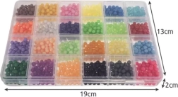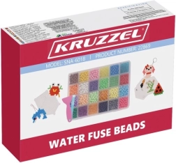 Креативният комплект с водни мъниста носи часове забавление за деца и родители. В кутията ще откриете 2800 мъниста в 24 ярки цвята, два шаблона (квадрат и шестоъгълник), 8 карти с модели и практични инструменти, включително пръскалка. Създадените мотиви е достатъчно след подреждане върху шаблона леко да се напръскат с вода и след изсъхване се закрепват заедно – без гладене.
