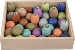 Качествената комбинация от дърво и MDF осигурява стабилност и приятни тактилни усещания. Богатият комплект от елементи предлага множество варианти за игра – от класическо „ловене“ и сортиране по цветове до състезания по време. Играта е чудесна за развитие на търпението, концентрацията и мануалната сръчност.