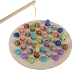 Забавна и образователна игра за деца, която развива фината моторика, координацията око–ръка, логическото мислене и концентрацията. Цветните дървени рибки с магнити и аксесоари насърчават откривателството и творческата игра, като качествената дървена изработка гарантира издръжливост и дълъг живот.