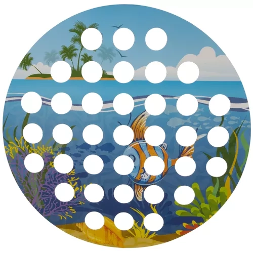 - дървена игрова дъска, хартиена вложка „океан“, органайзер, 9 рибки с магнит, 28 топчета, магнитна въдица, пинсета, пръчици