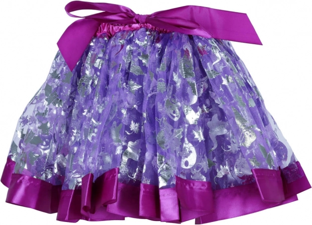 Лилава поличка с лъскави сребърни шарки и еластичен колан лесно се адаптира към различни силуети.