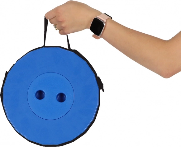 Интегрирана дръжка и регулируема лямка позволяват удобно носене в ръка или през рамо. В сгънато състояние табуретката е плоска и компактна.