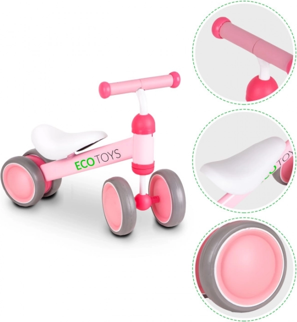 Открийте колелото за бутане ECO TOYS, проектирано с мисъл за най-малките, които започват своите колоездачни приключения. Благодарение на леката конструкция (2,2 кг) и издръжливите пластмасови колела е подходящо както за използване на закрито, така и на открито и предлага безопасно и забавно каране.