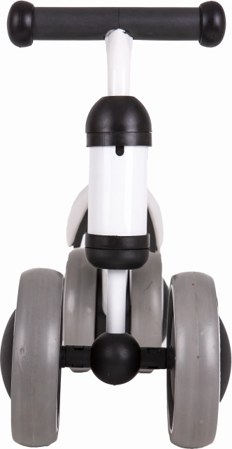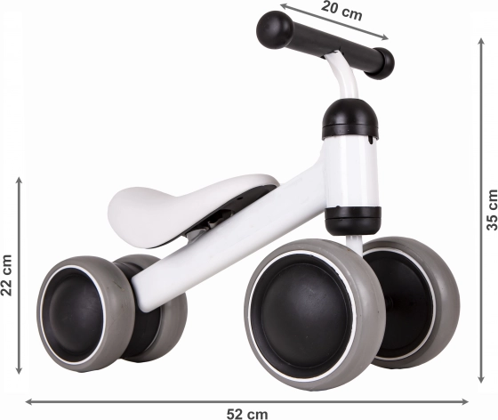Леката конструкция позволява лесна манипулация от малките деца. Рамката от устойчива пластмаса и меките колела са подходящи както за каране у дома, така и навън. Колелото е оборудвано с кормило с ограничител, който предотвратява прекомерното завъртане и така минимизира риска от падане. Меката седалка гарантира комфорт при каране, а цялостната изработка е насочена към безопасността и радостта на децата.