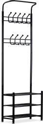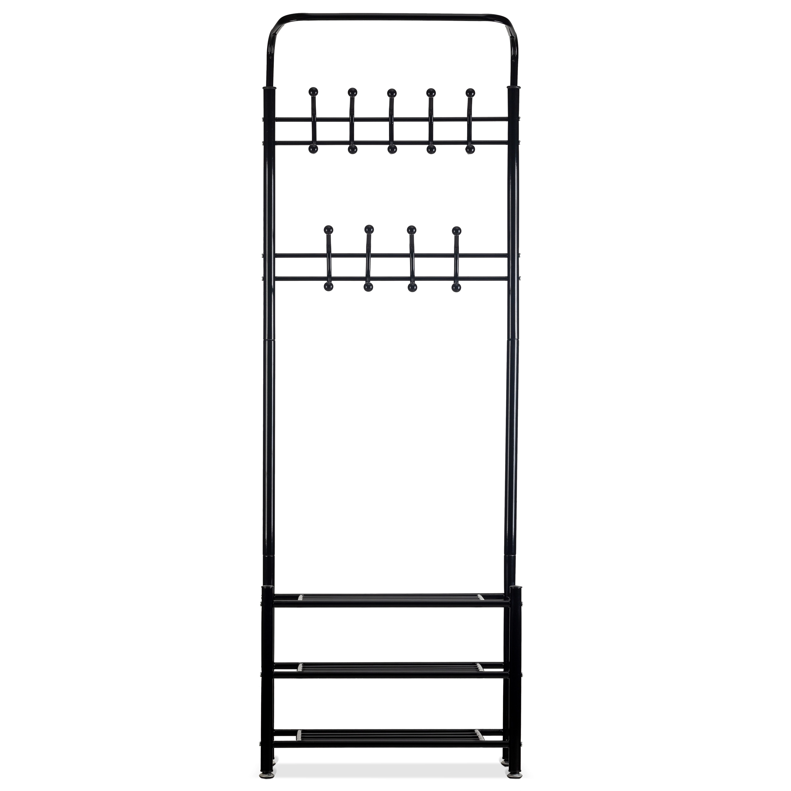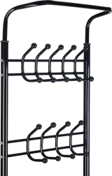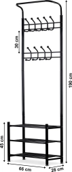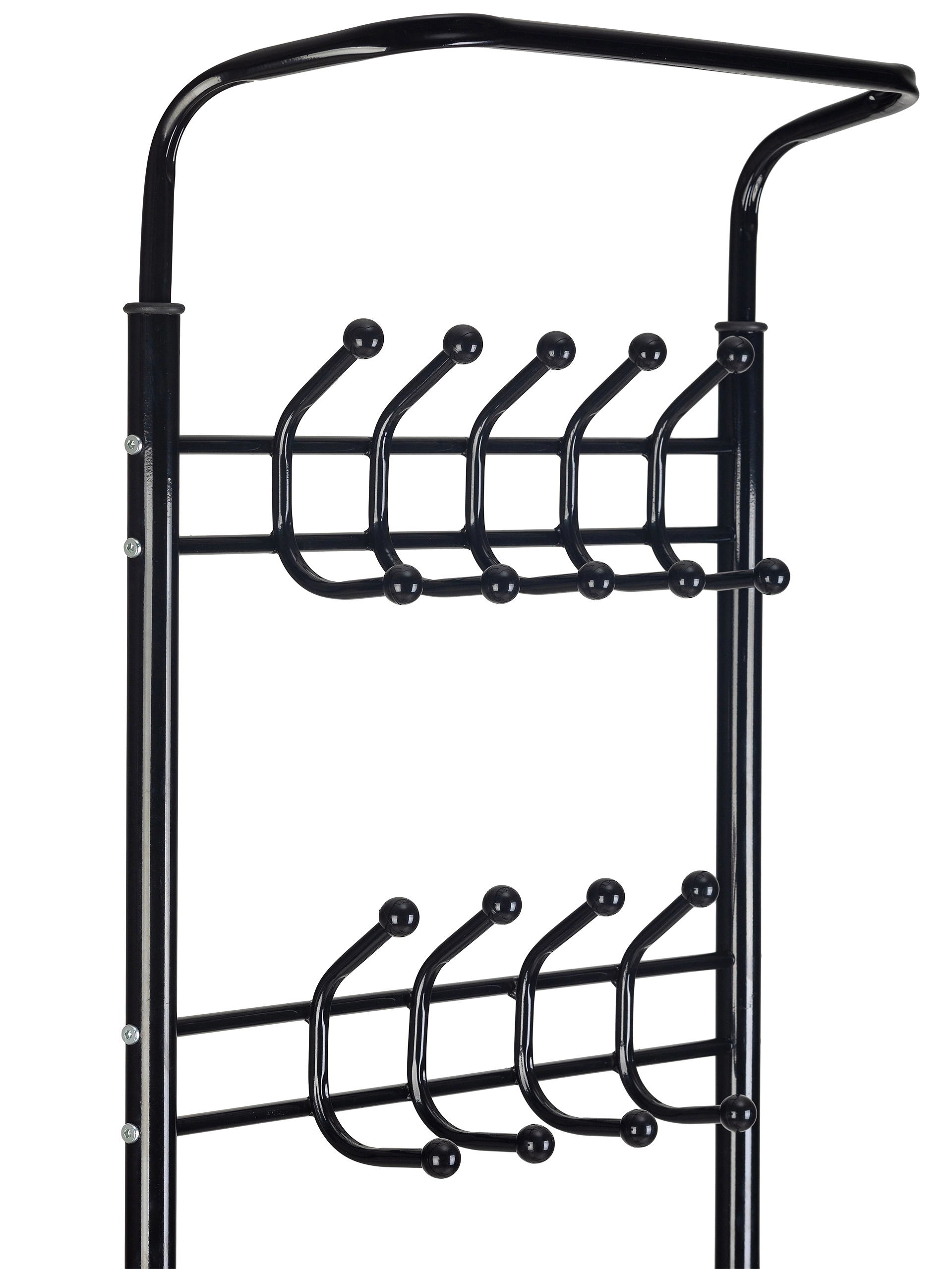 Тази функционална стойка за дрехи е оборудвана в горната част с два реда с 18 куки, което я прави идеална за домашни гардероби, офиси или чакални.