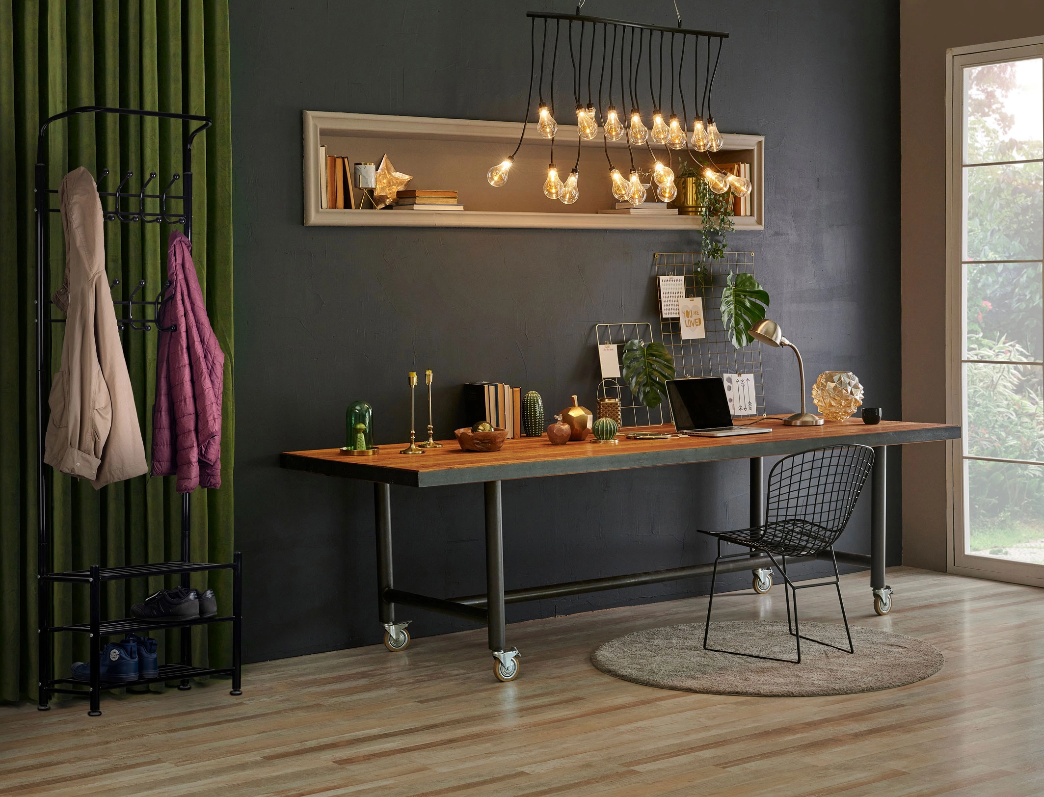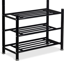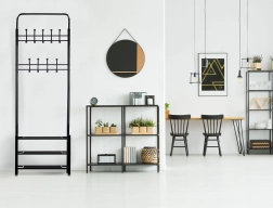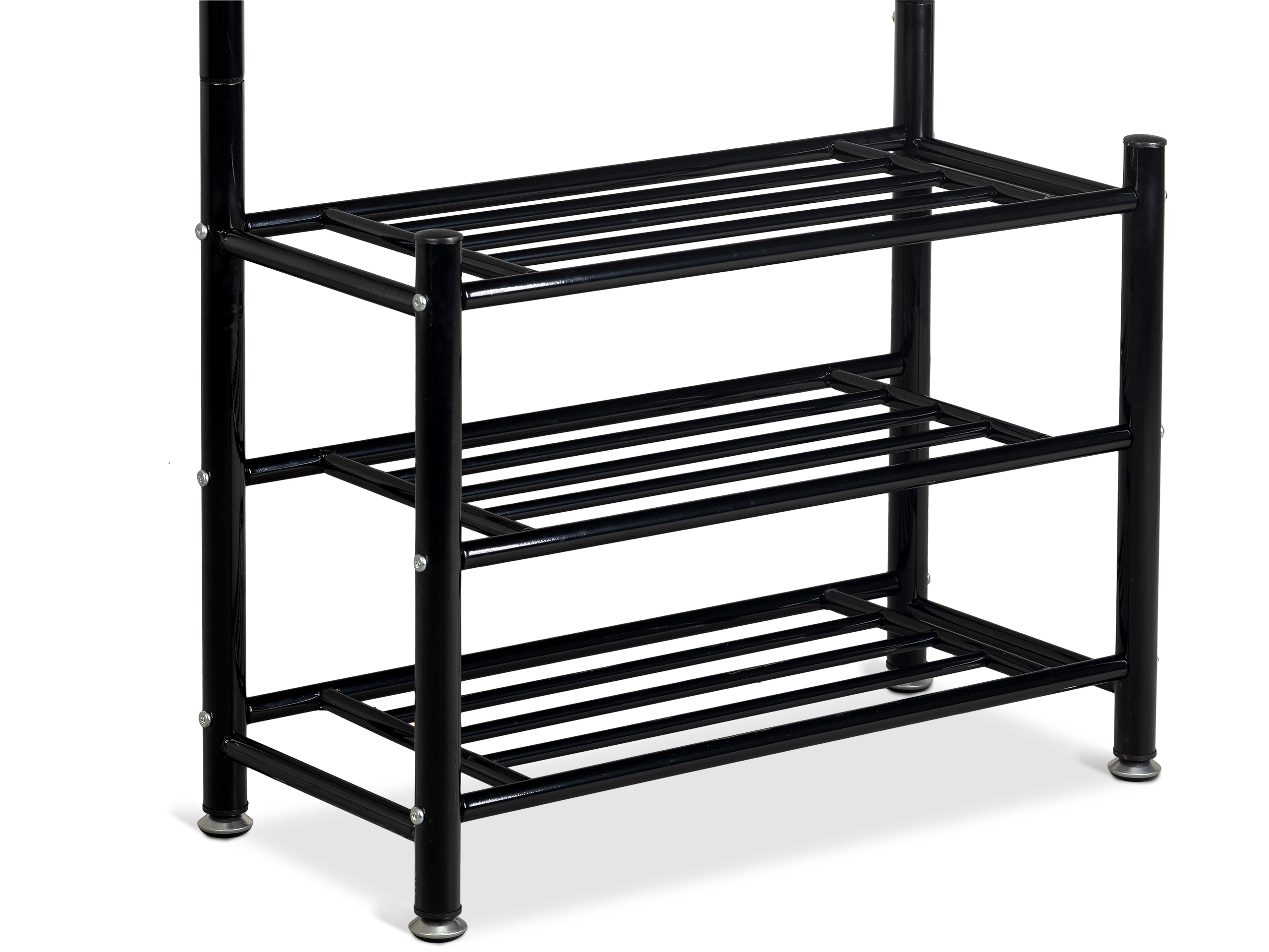 В долната част на стойката ще намерите три функционални рафта, върху които можете да съхранявате по-малки дрехи, чанти и дори обувки. Стабилната конструкция на 4 крачета осигурява стабилност дори при по-голямо натоварване.