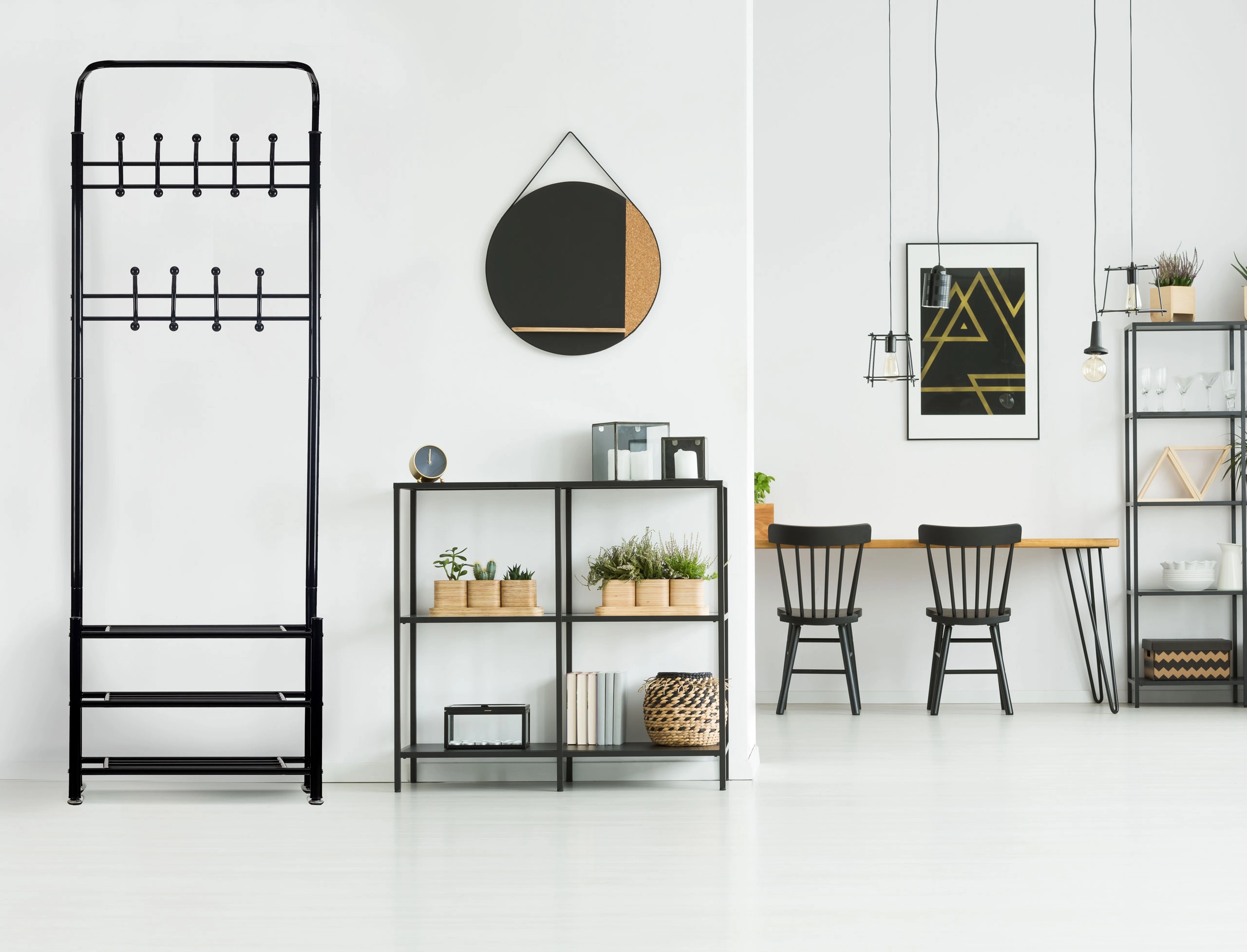 Предлага 18 куки и 3 рафта за високоефективна организация на дрехи и обувки.
