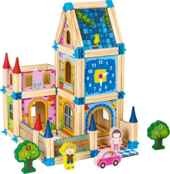 Този дървен конструктор ще пренесе вашето дете в света на неограниченото строене и създаване на нови структури. Комплектът с атрактивни цветове и голям брой блокчета осигурява часове забавление.