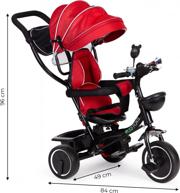 Детската триколка ECOTOYS е идеално решение за родители, които търсят безопасна и забавна възможност за своите деца. Въртяща се на 360° седалка, сгъващ се сенник и удобна дръжка позволяват тази триколка да расте заедно с вашето дете.