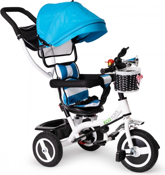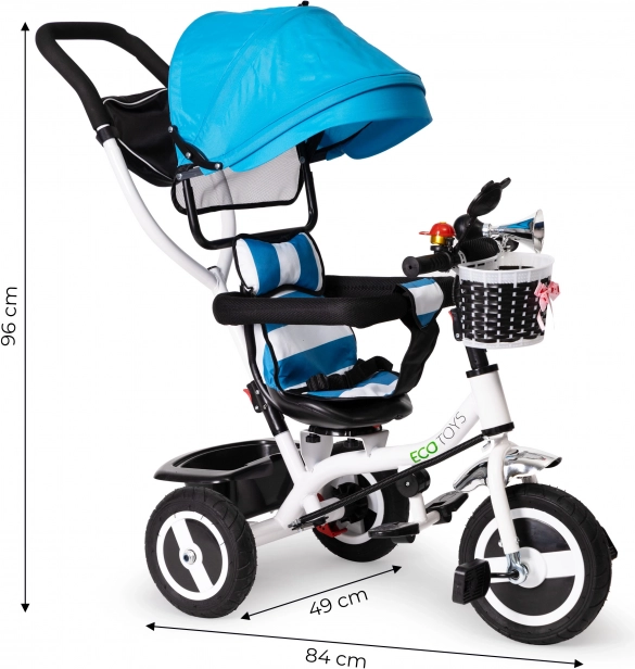 Детската триколка ECOTOYS е проектирана за деца от 12 месеца, предоставя комфорт и безопасност благодарение на меката облегалка и сенника, който защитава от слънце и дъжд. Рамката с въртяща се седалка позволява на родителите лесно да настаняват детето.