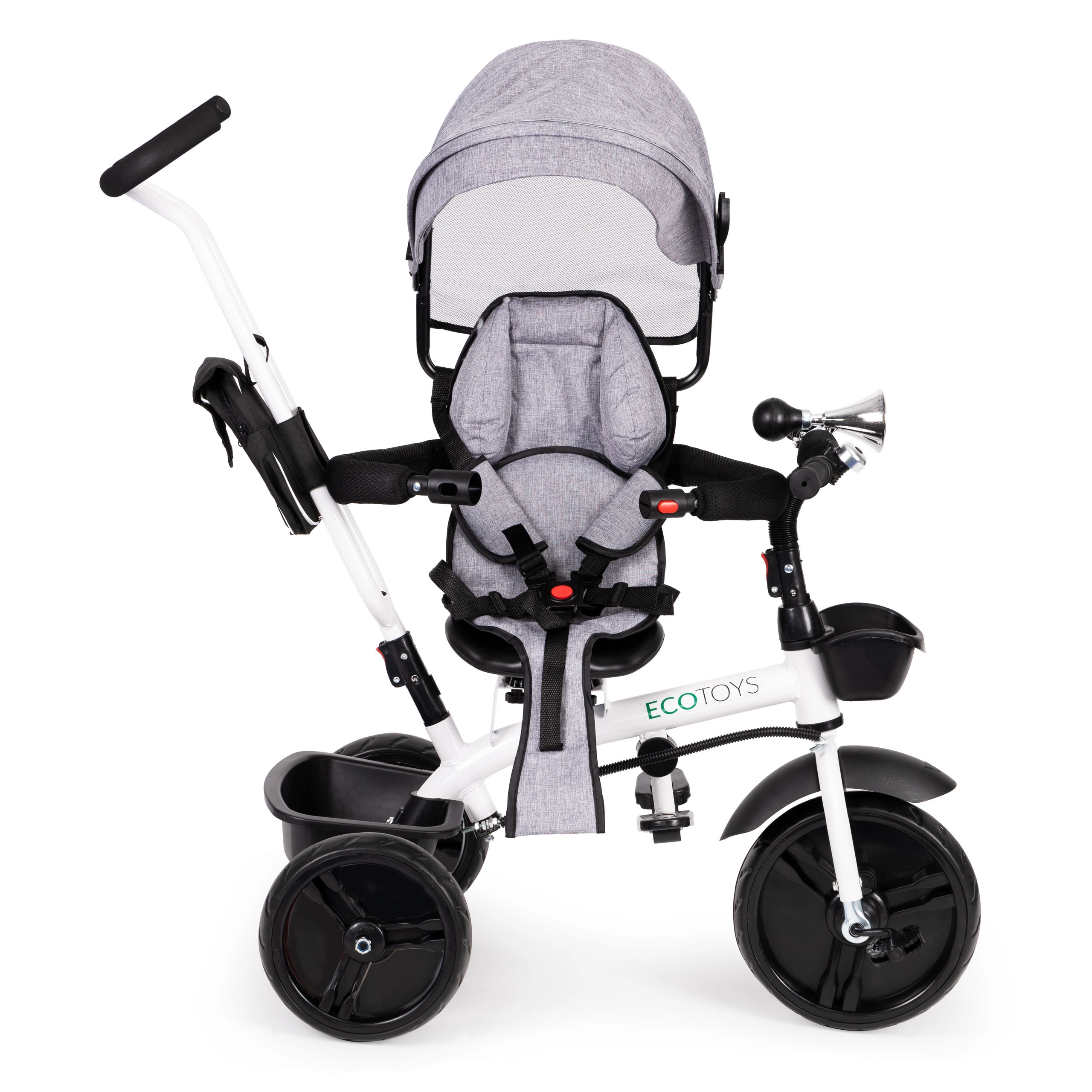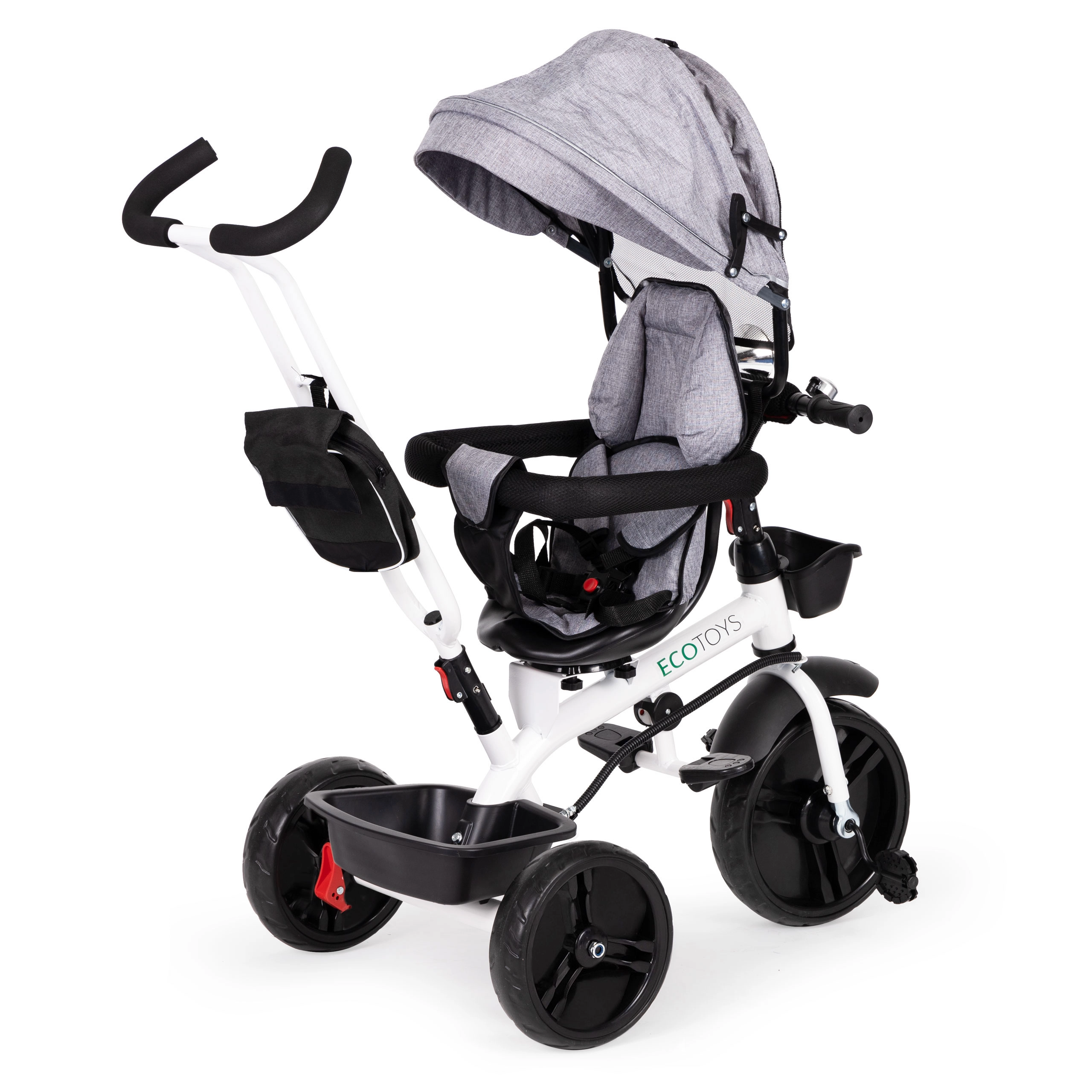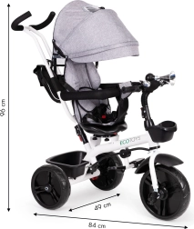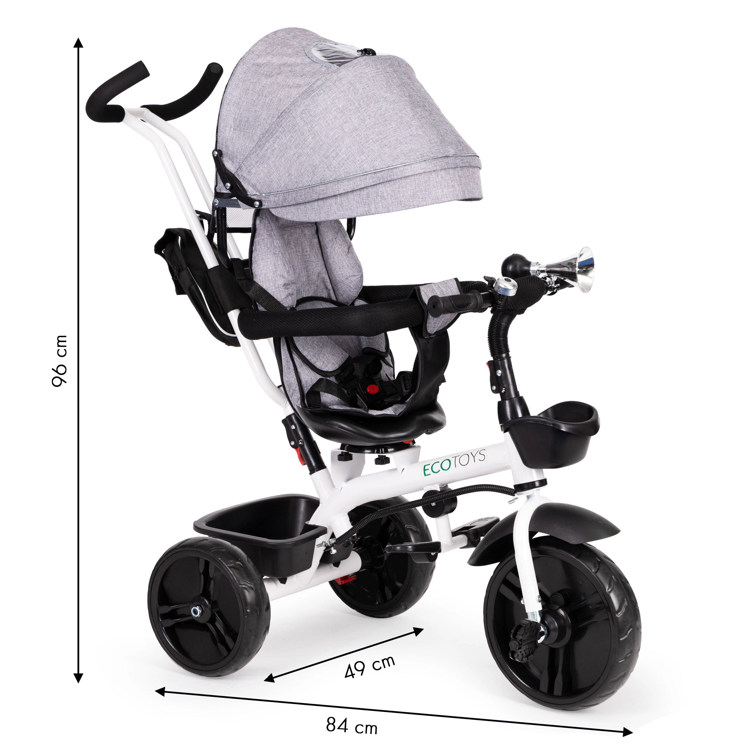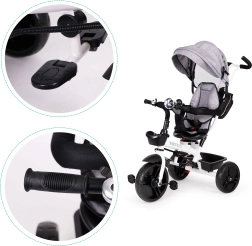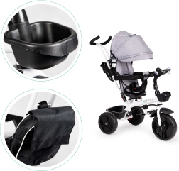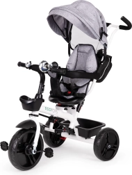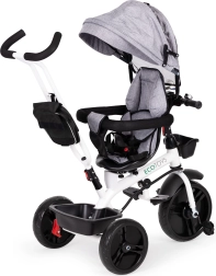 Тази мултифункционална триколка расте заедно с вашето дете: от режим с родителско водене до самостоятелно каране. Въртящата се седалка 360° позволява позиция с лице към родителя за по-добър контакт или по посока на движението за любопитните изследователи. Полстерираната седалка, 5-точковият предпазен колан и предпазната дръжка дават спокойствие, а регулируемият сенник защитава от слънце и лек дъжд.