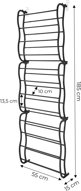 Умно решение за всеки дом: висящият органайзер за обувки тип стълба се закача лесно за горния ръб на вратата и моментално освобождава подовото пространство. Благодарение на прегледното подреждане любимите ви чифтoве са винаги под ръка – от маратонки и чехли до елегантни обувки.
