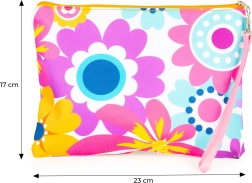 Пъстра текстилна чантичка с цип и каишка съхранява всички аксесоари заедно. Лесна за пренасяне, предпазва съдържанието и помага за поддържане на ред у дома и по време на пътуване.