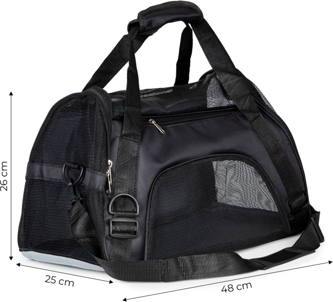 С безопасен цип от двете страни имате лесен достъп и възможност за отваряне от двата края. Чантата е оборудвана с джоб за съхранение на всички важни неща като играчки или храна за вашите любимци.