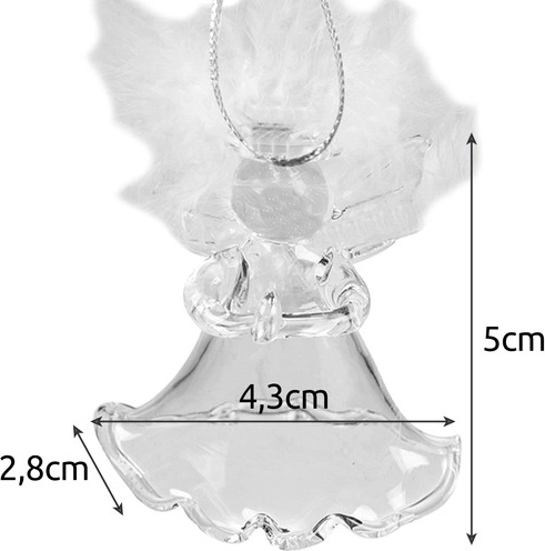 Комплект ангелчета от прозрачно стъкло с пернати крилца, които носят фина естетика и деликатност. Идеални са като украса за коледната елха.