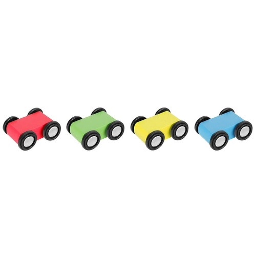 В комплекта има 4 малки колички, които със своята конструкция насърчават децата към развитие на въображението и креативността. Това трасе е не само чудесно за игра, но и за развитие на фината моторика и сръчността на малките деца.