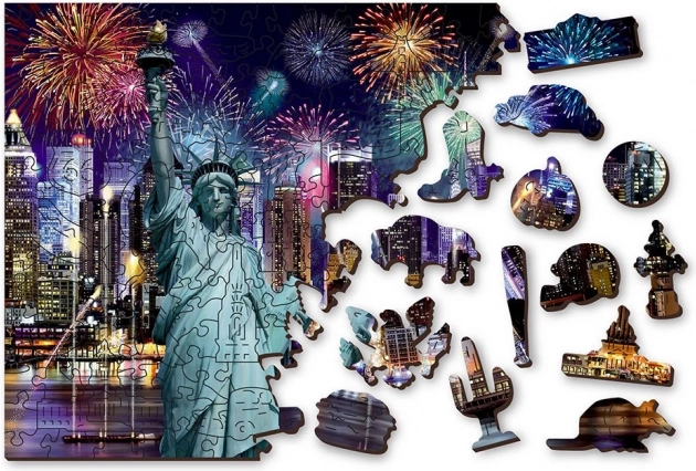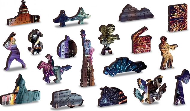 Дървеният пъзел „Ню Йорк през нощта“ предлага незабравимо изживяване за всички любители на пъзели. Всеки от 200-те елемента е прецизно лазерно изрязан от висококачествено дърво, осигуряващ издръжливост и прецизност. Предната страна на елементите е украсена с детайлни изображения, а задната страна има тапетен мотив за по-висока естетическа наслада.