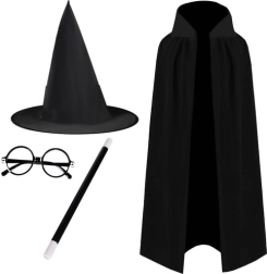 Универсалният черен дизайн подхожда на всякакви теми и е перфектен за тематични партита, карнавал и училищни представления. Благодарение на качествените материали комплектът е издръжлив и подходящ за многократна употреба.