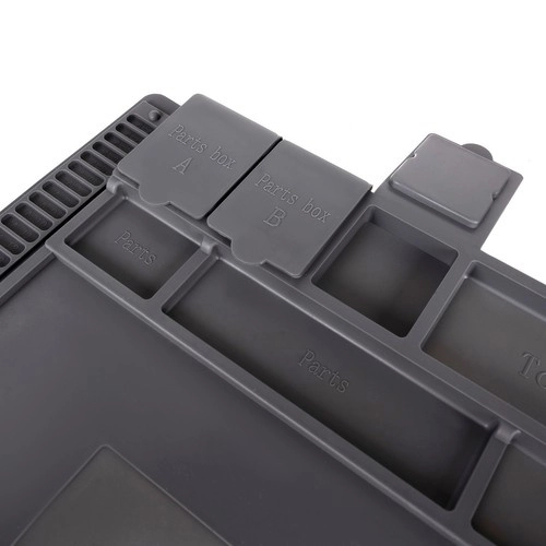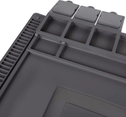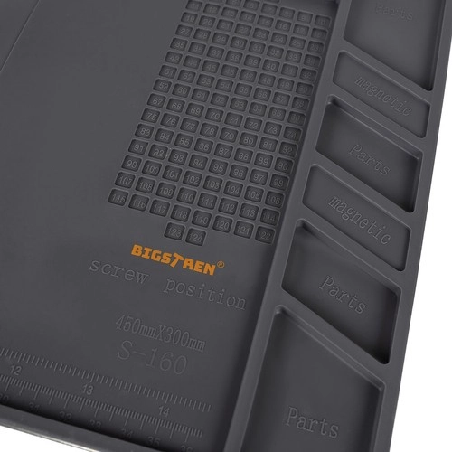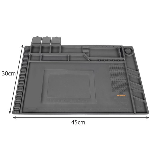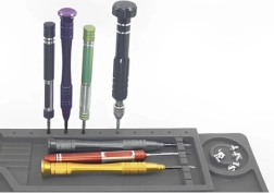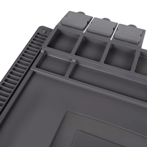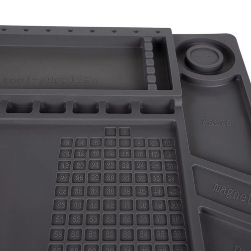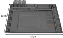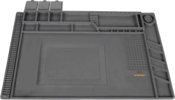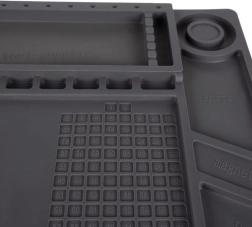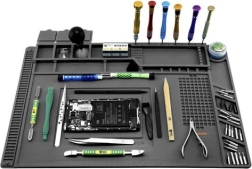Тази многофункционална силиконова сервизна подложка е идеална за ремонти на телефони, лаптопи и фино запояване. Благодарение на 4-те магнитни джоба, структурираните отделения и отделените места за отвертки ще държите всички дребни части и инструменти винаги под контрол. Нехлъзгащият материал запазва всичко на мястото му дори при по-сложни операции.