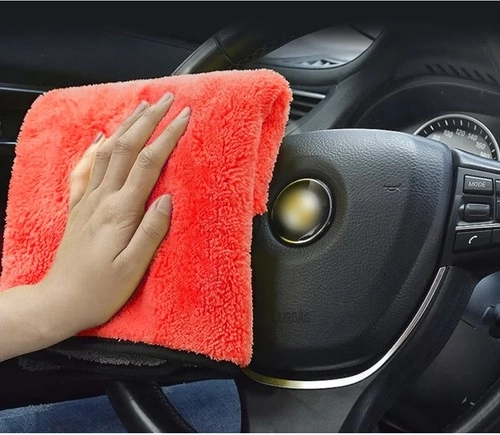 Пухкавата ръкавица и меките микрофибърни кърпи отлично попиват вода, нежно измиват и полират без следи и надрасквания.